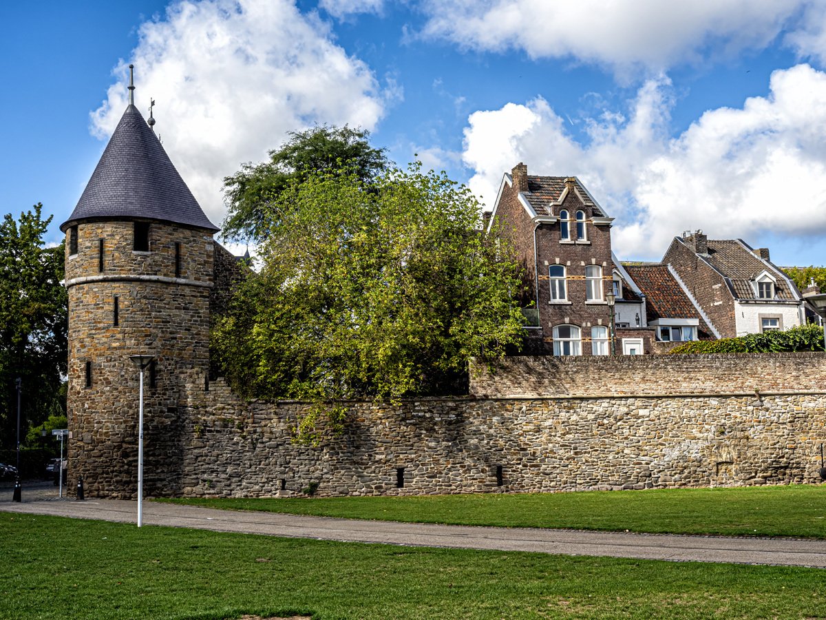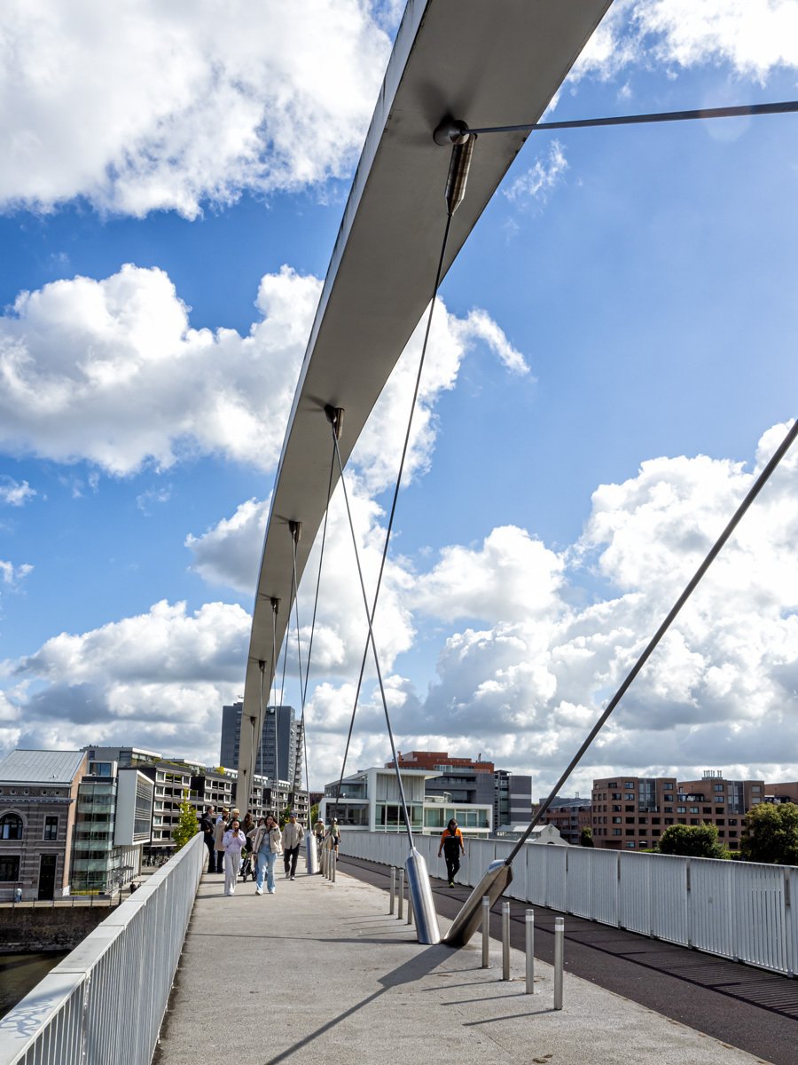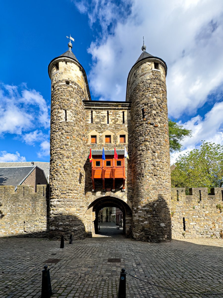 Next, we wandered over to the Helpoort, the oldest surviving city gate in the Netherlands, dating back to 1229. We climbed some steps onto the old city wall, then wandered toward the sleek modern Hoeg Brögk pedestrian bridge. From there, we looked out at the Meuse River, which also flows through Dinant, connecting our stops across two countries.