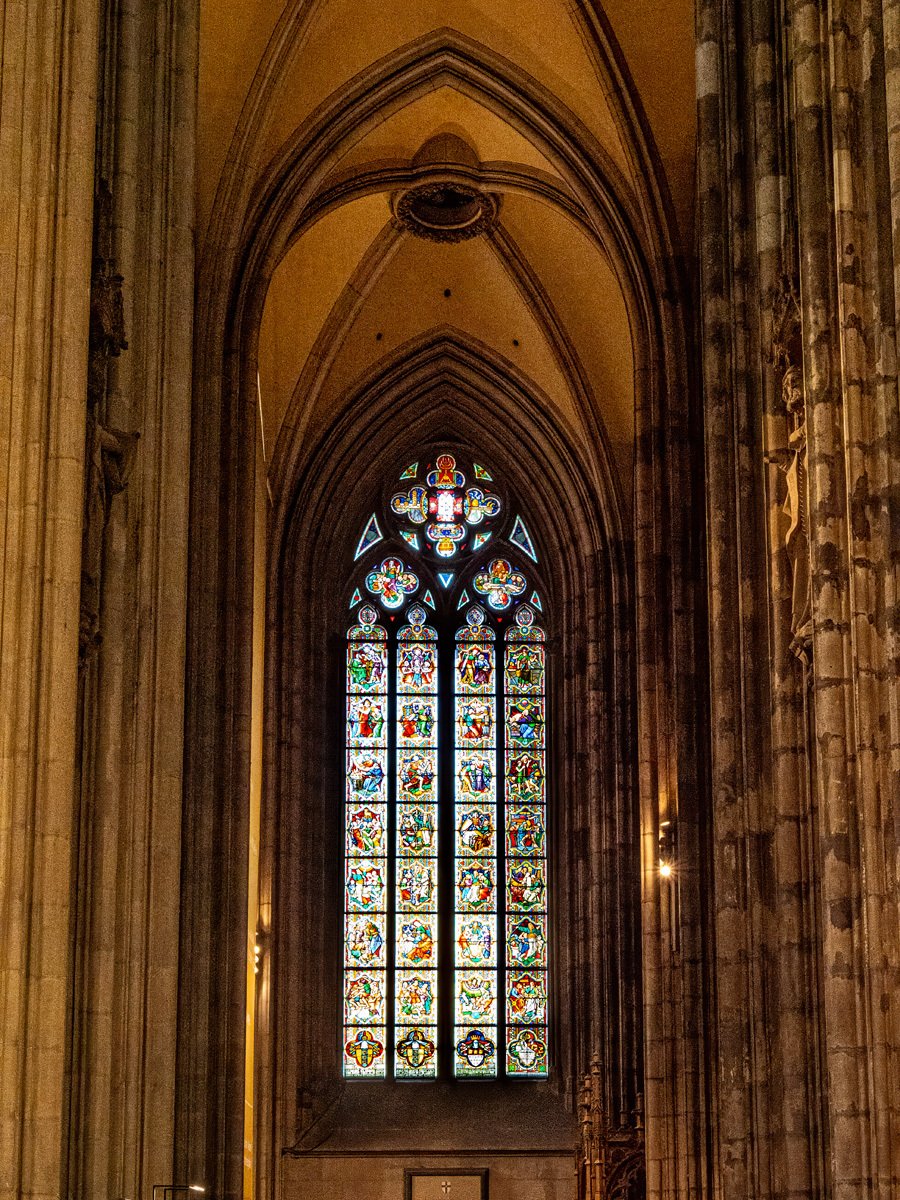 Afterwards, we continued on to Cologne through heavy but uneventful traffic. Once checked into our hotel, I set out on foot toward the Cologne Dom (Cathedral). “Imposing” hardly does it justice—this Gothic giant towers over the city, its twin spires soaring to 157 meters. Construction began in 1248 and wasn’t finished until 1880, making it one of the longest building projects in history. Inside, it’s one of the most breathtaking cathedrals I’ve ever stepped into. The stained glass windows cast a kaleidoscope of color across the stone, and the intricate floor mosaics—some dating back to the 14th century—are masterpieces in themselves.