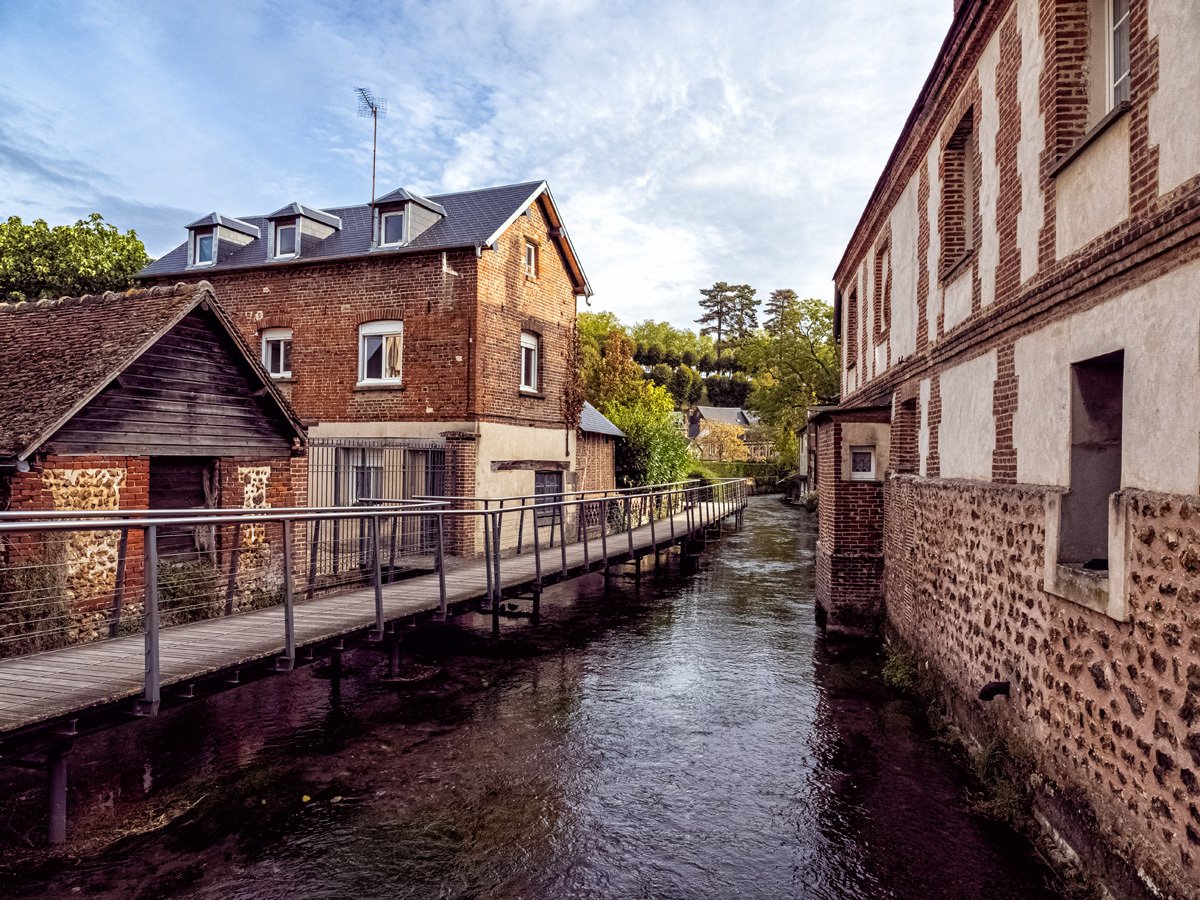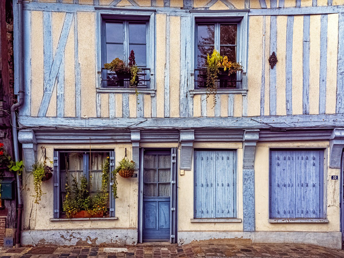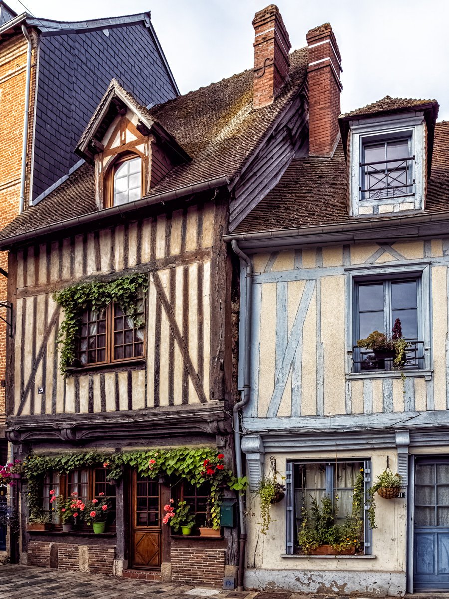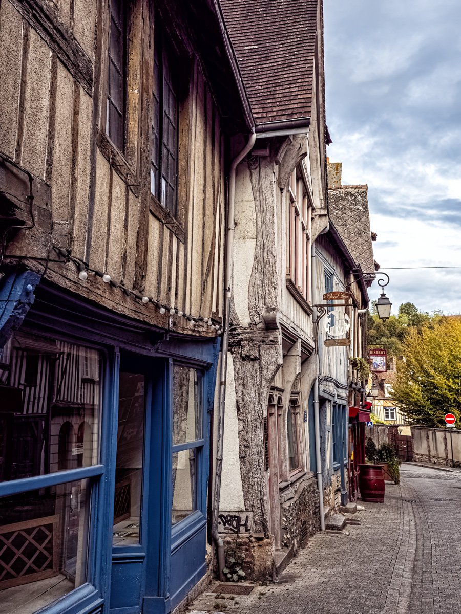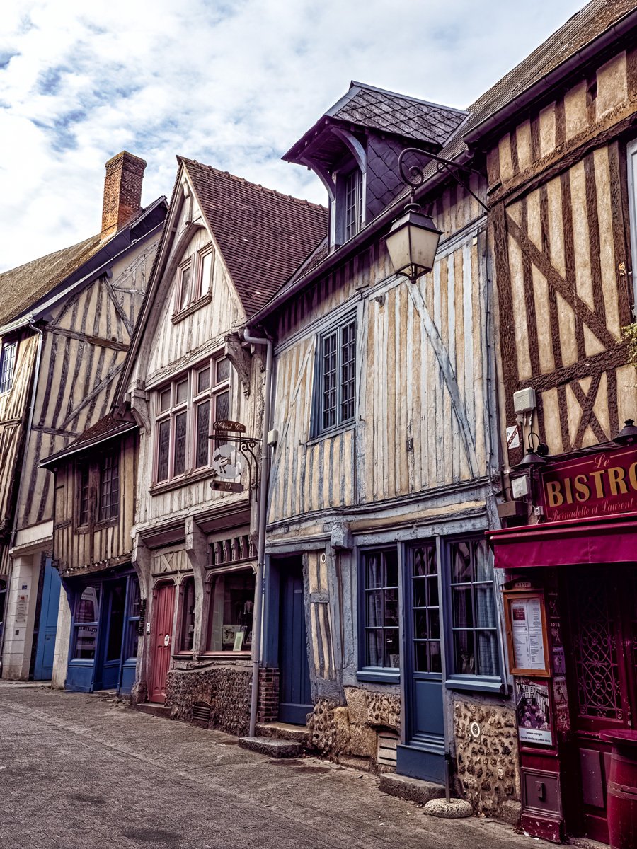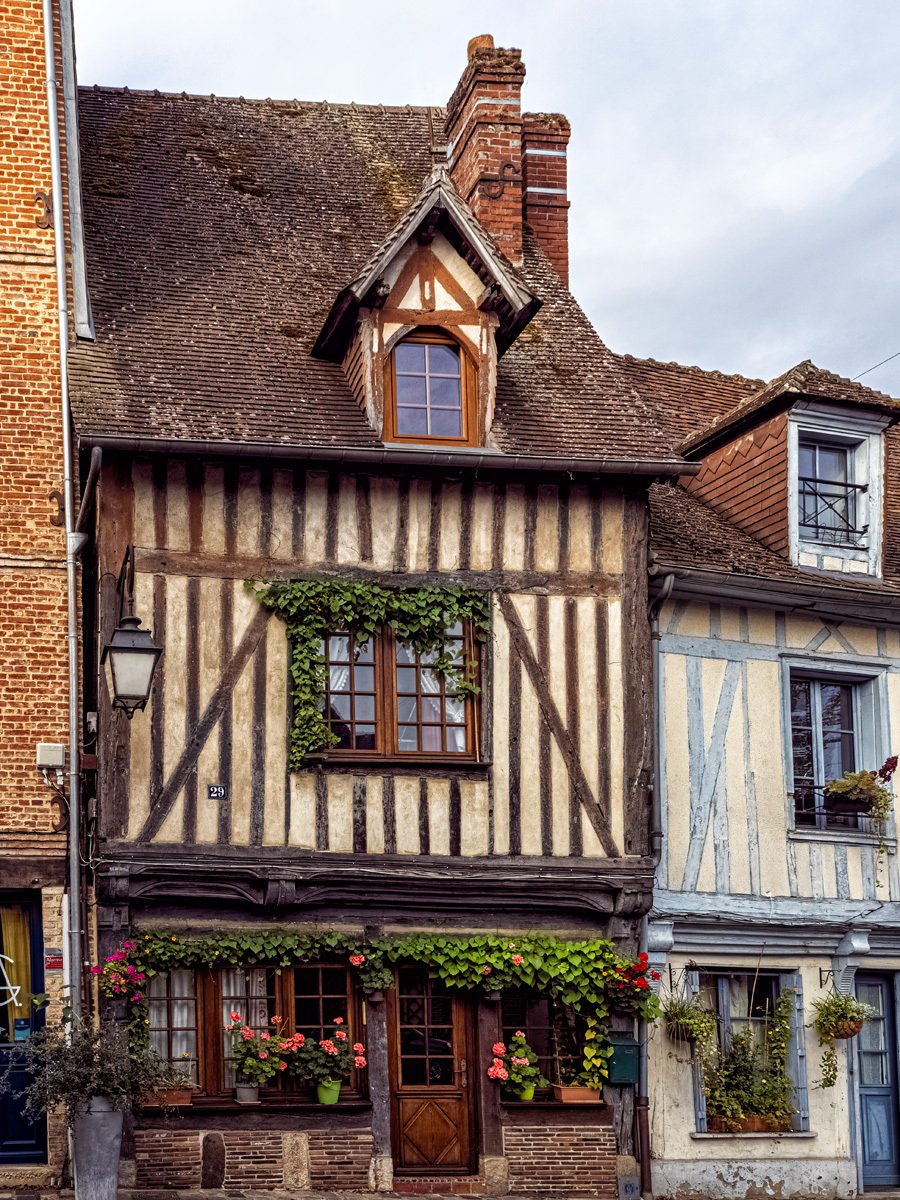 Got up this morning and went over to Bernay, a charming Norman town that turned out to be much bigger than I expected. We sampled some of the historic architecture before heading into Église Sainte-Croix, built in the 14th century on the site of a former abbey. The interior was a surprise with its timber-beamed ceiling and colorful stained glass. Like many French parish churches, it also houses a war memorial to local soldiers lost in both World Wars.