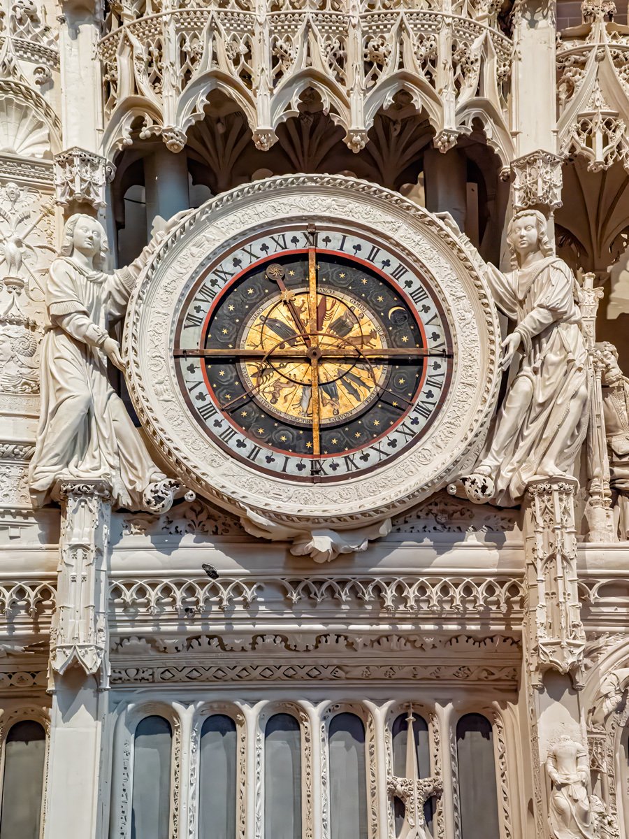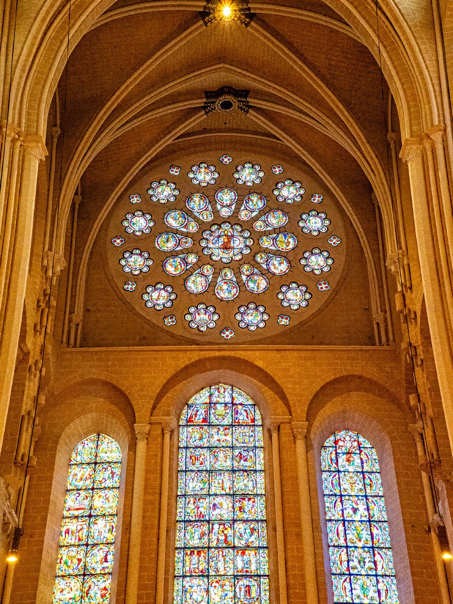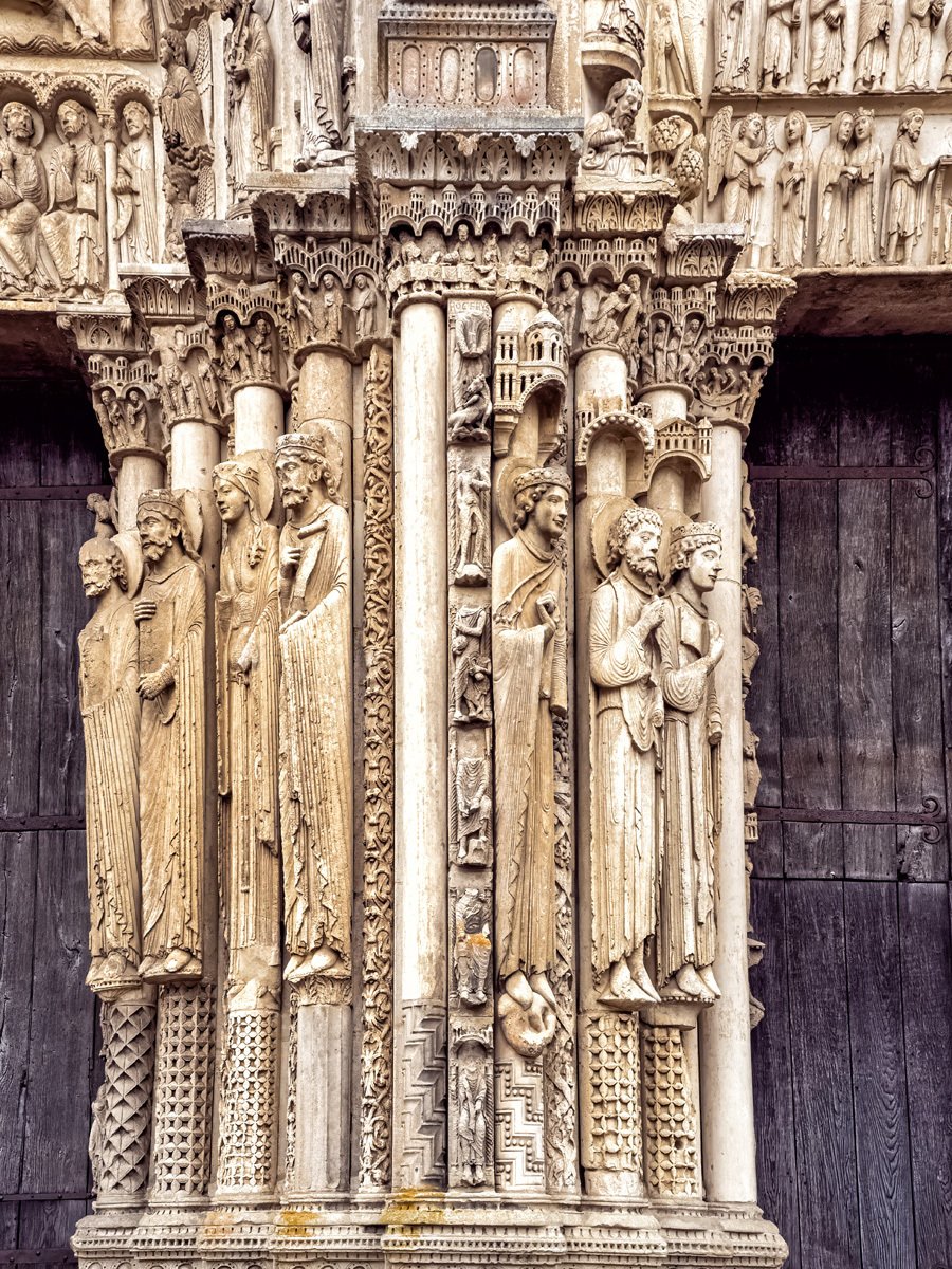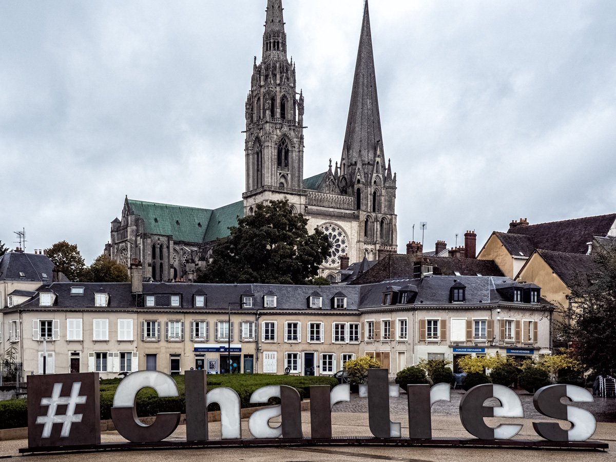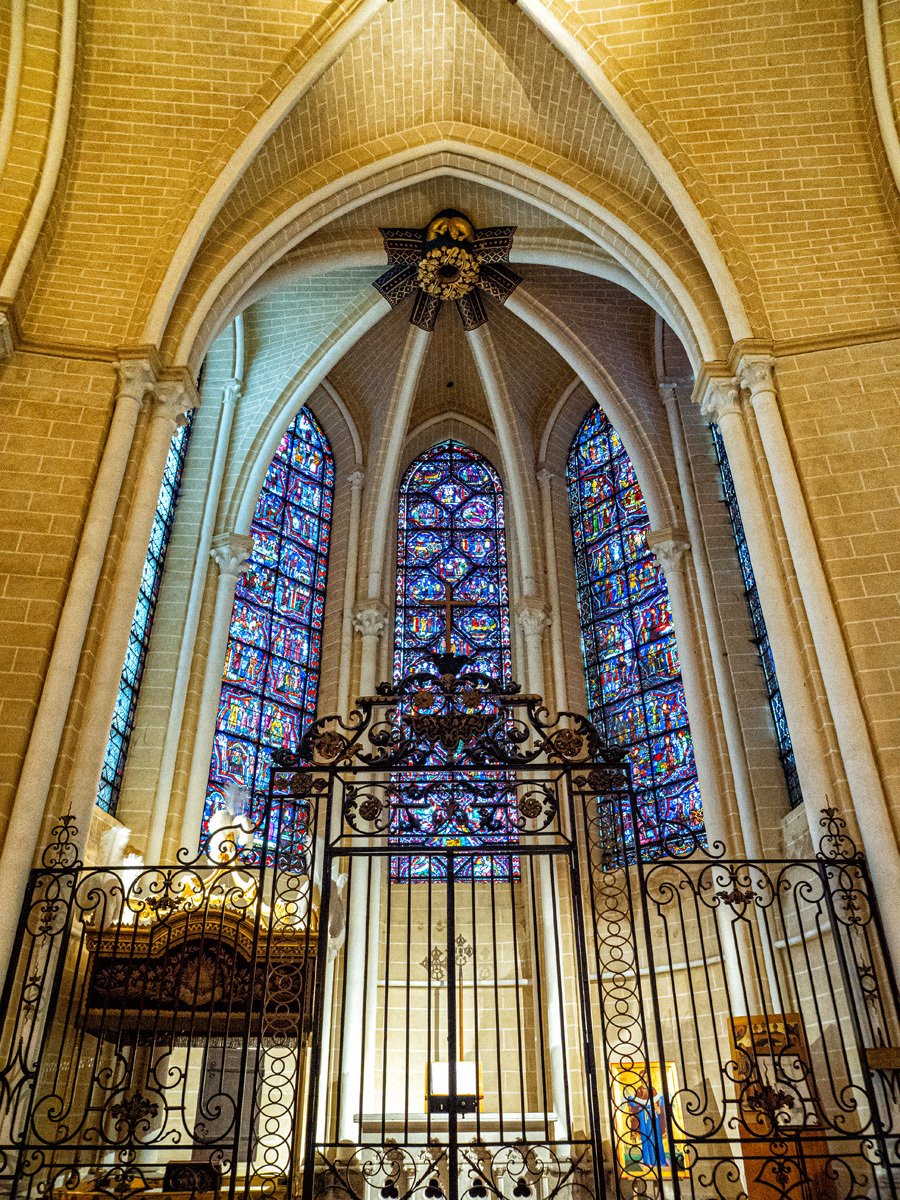 We drove a couple of hours through drizzle on our way to Chartres. On the way into town we spotted a supermarché and stocked up on supplies for our Airbnb. Too early to check in, we headed straight to Chartres’ crown jewel: Notre-Dame Cathedral, one of the finest examples of French Gothic architecture. Built mostly in the 12th and 13th centuries, it’s famed for its magnificent stained glass windows and its elaborate sculpted choir screen that tells biblical stories in stone.