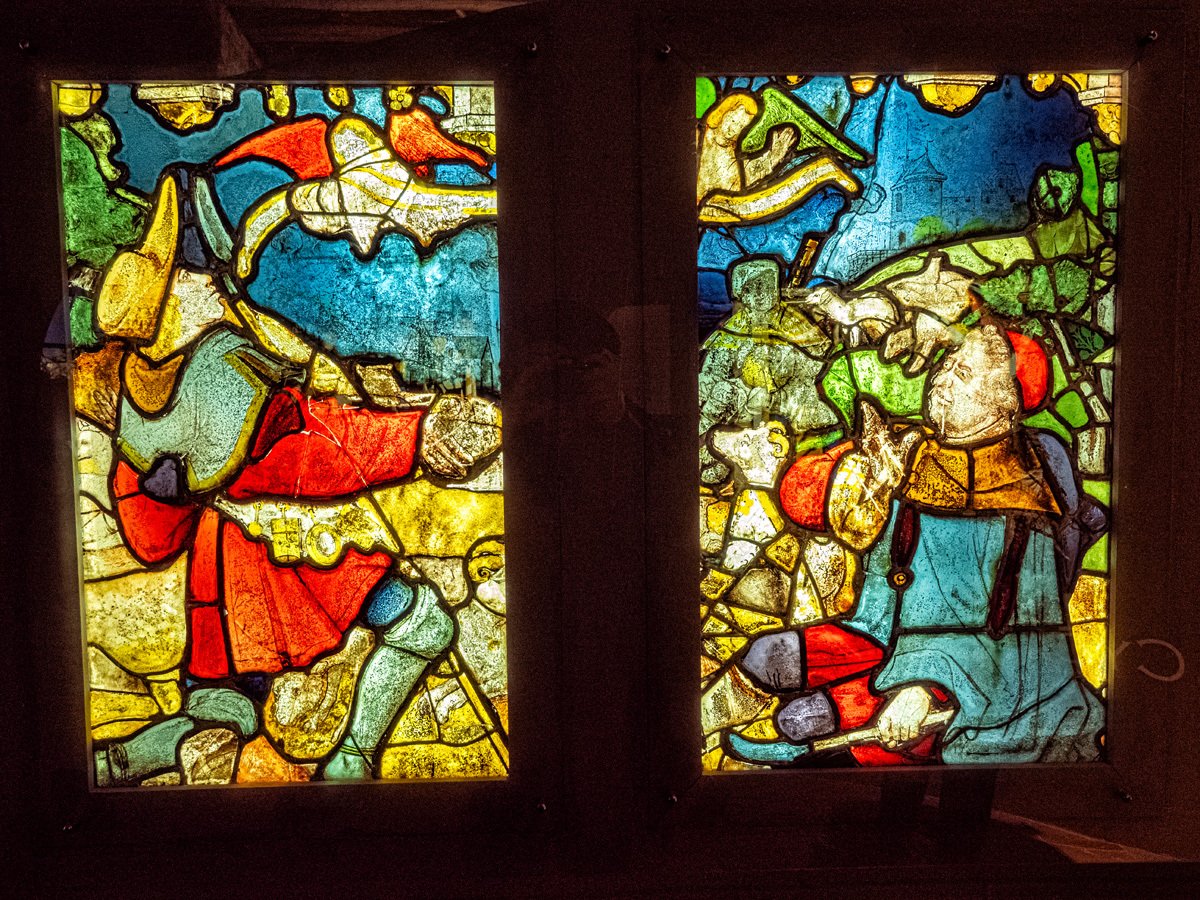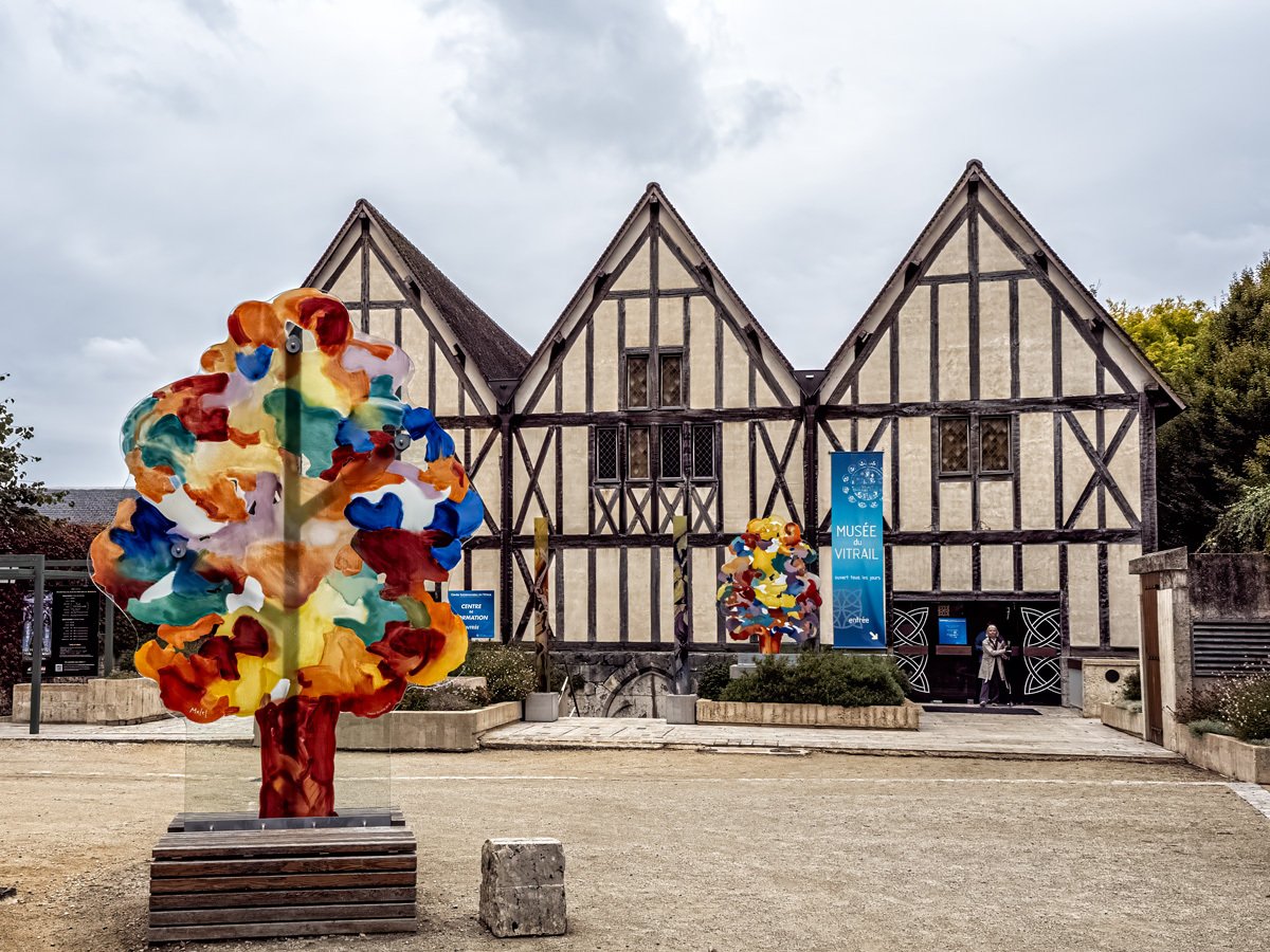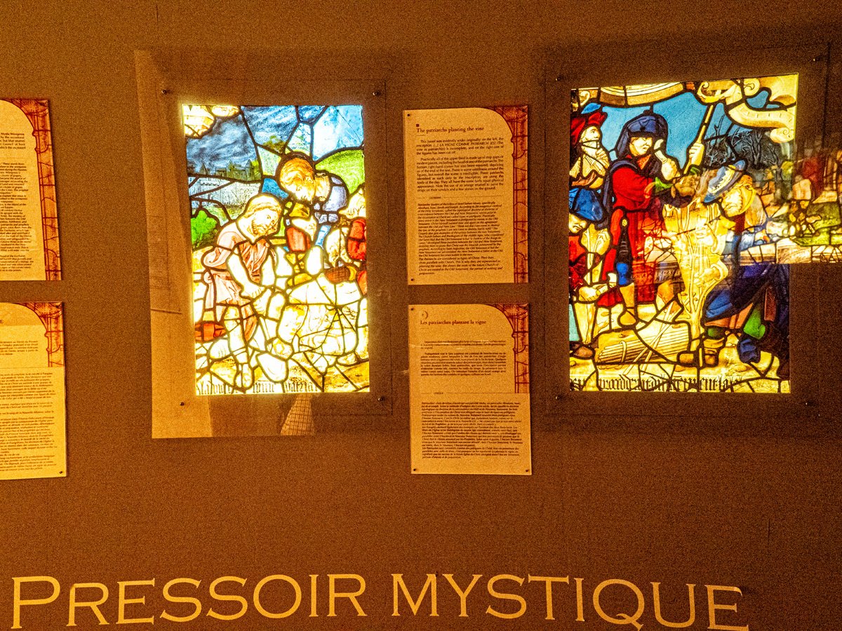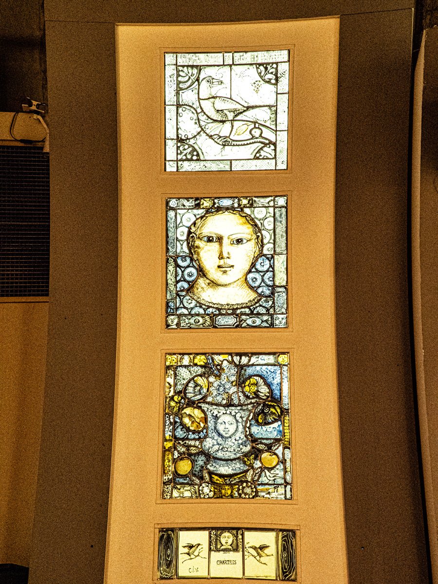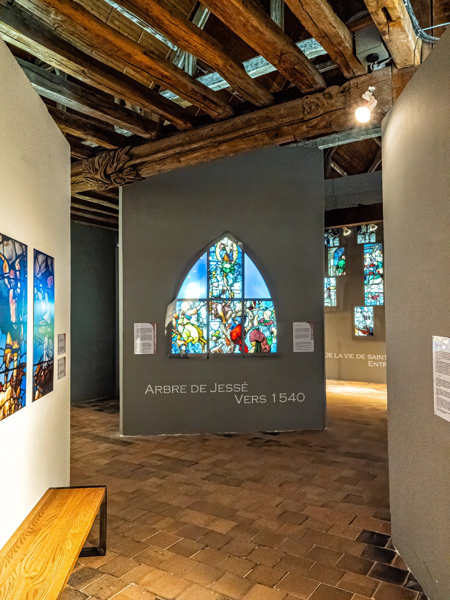 Back in Chartres, we ducked into the Stained Glass Museum, located just steps from the great cathedral. Here we got a rare, close-up look at salvaged panels, delicate restorations, and even a reproduction of the cathedral’s famous Angel Choir. The museum also has a working workshop where artisans continue the centuries-old tradition of repairing and crafting new windows. For die-hard glass fans, they even display glossy photographic panels of every single window inside the cathedral—talk about thorough!