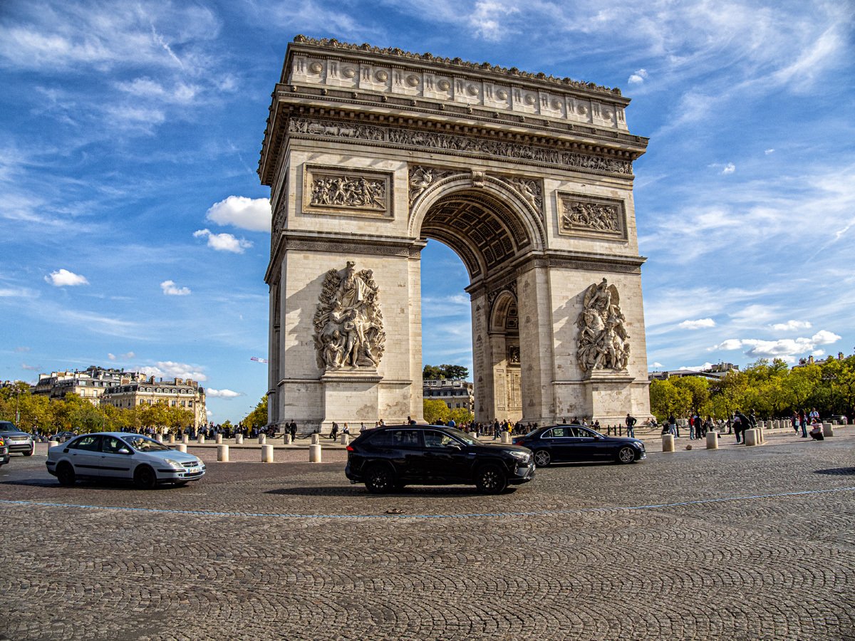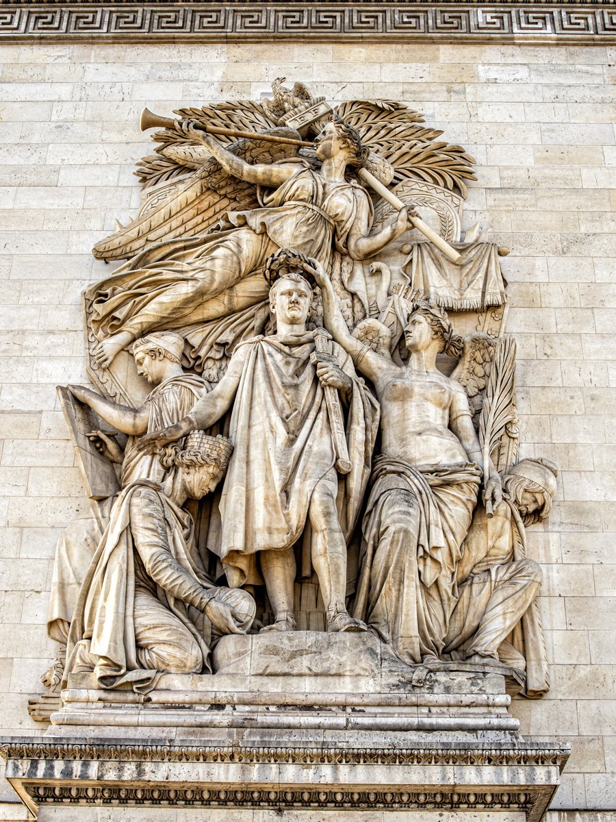 In the afternoon, we headed to the Arc de Triomphe. Commissioned by Napoleon after his victory at Austerlitz in 1805, the Arc honors those who fought and died for France in the Revolutionary and Napoleonic Wars. Beneath it lies the Tomb of the Unknown Soldier from World War I, where an eternal flame still burns. We took our photos, admired the sheer size of the monument, and then grabbed an Uber back to the hotel.