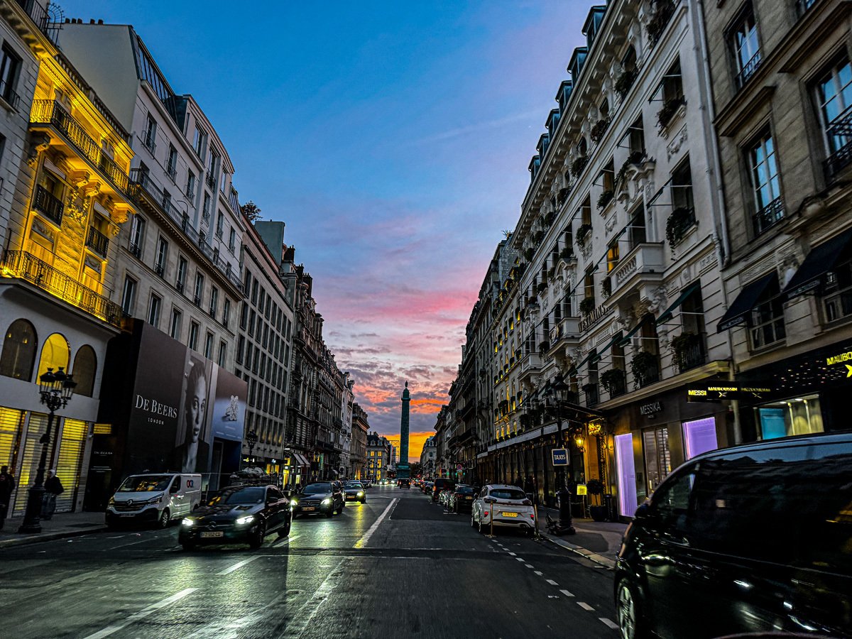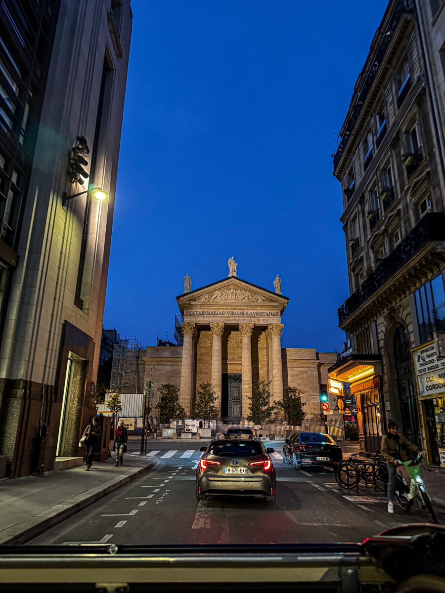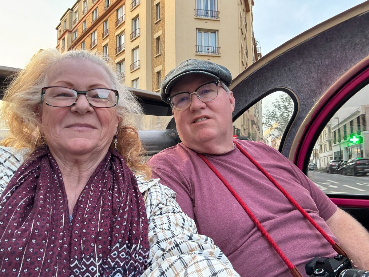 But the day wasn’t done! At 7:00 we were picked up in a bubblegum-pink Citroën for an evening tour. Our driver whisked us through Parisian streets, past the Arc again and up into Montmartre. We stopped for pictures, soaked in the lively atmosphere, and ended with a toast of champagne at a secluded viewpoint of the Eiffel Tower sparkling against the night sky. A perfect way to celebrate our trip!