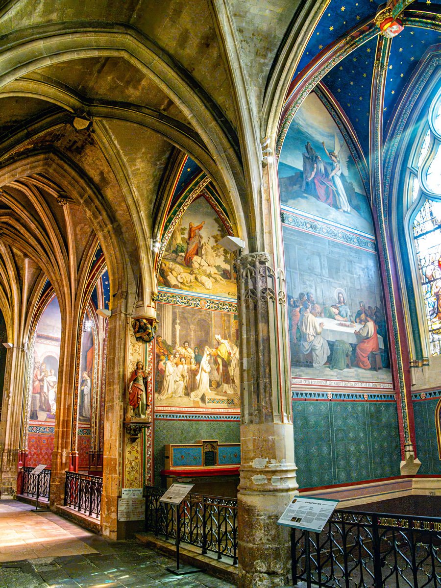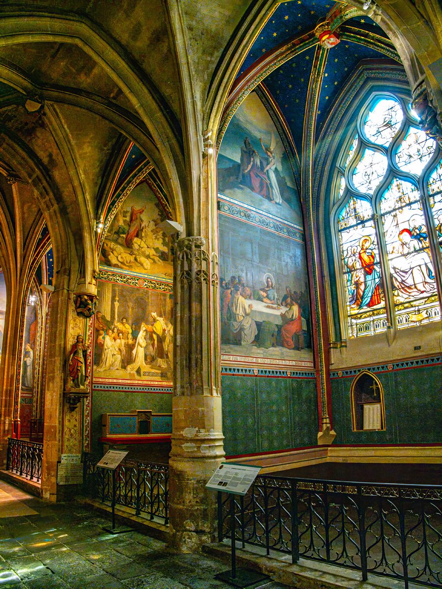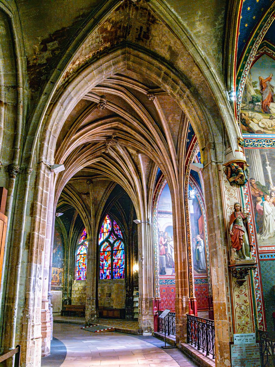 From there, we made our way to Saint-Séverin. Last time it had been closed to the public, but today we were lucky—though mass was still in progress when we arrived. We ducked out for an early lunch and returned just in time to see the interior. Wow! My persistence paid off. This Gothic church, dating back to the 13th century, is one of the oldest still-standing parish churches on the Left Bank. Its twisting columns, vibrant stained glass (including some modern windows by Jean Bazaine), and vaulted ceilings were simply stunning.