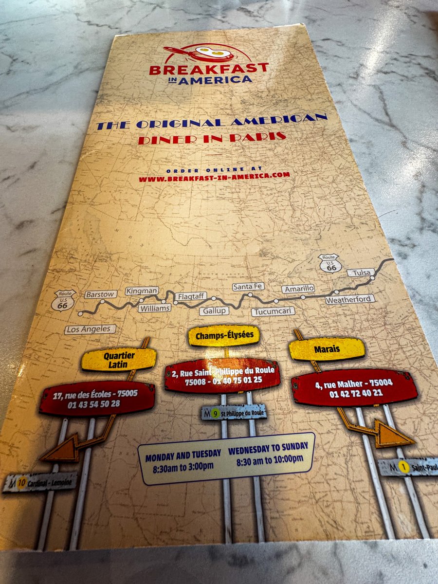 A little fun fact: Breakfast in America was opened in 2003 by an American expat who missed diner culture as much as I did. It quickly became a Parisian favorite, especially among students and travelers.