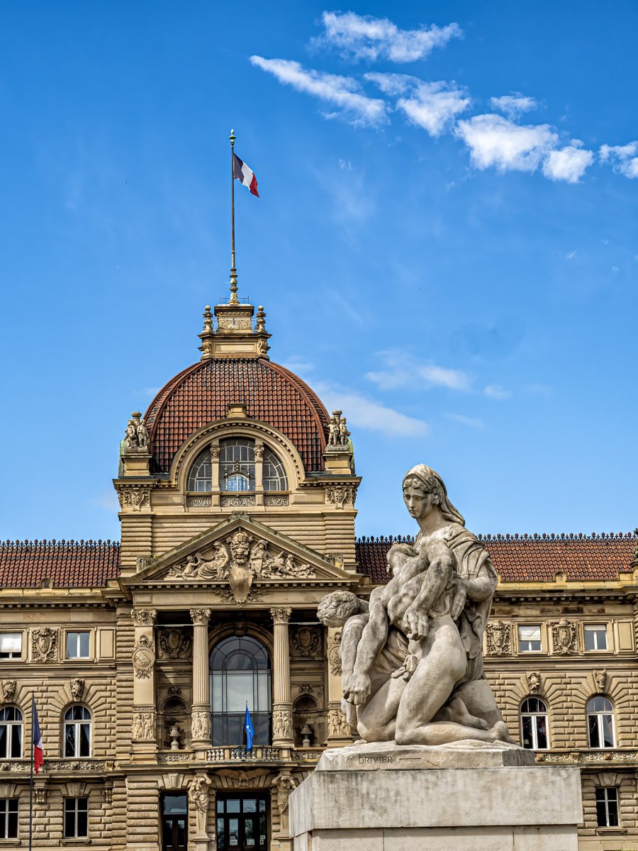 We caught the early train from Colmar and rolled into Strasbourg around 8 a.m. Unlike our previous two visits during the magical Christmas markets, the city looked quite different this time—no festive stalls, no mulled wine, just quiet cobblestones and a cool gray morning that hinted at rain. By afternoon, though, the skies turned blue and the temperature climbed to 80 degrees.