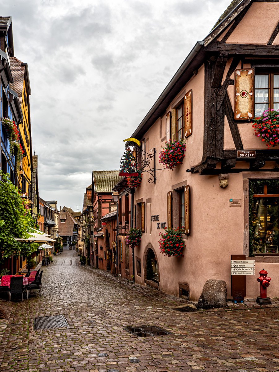 We couldn’t help but remember our visit here at Christmas back in 2018. The nice thing about these historic Alsatian towns is that time doesn’t seem to change them much—half-timbered houses, cobbled lanes, and centuries of stories tucked into every corner. Riquewihr is often called one of the “Most Beautiful Villages of France” and was once a wealthy wine town fortified in the 16th century. It still produces some of the region’s best Rieslings today.