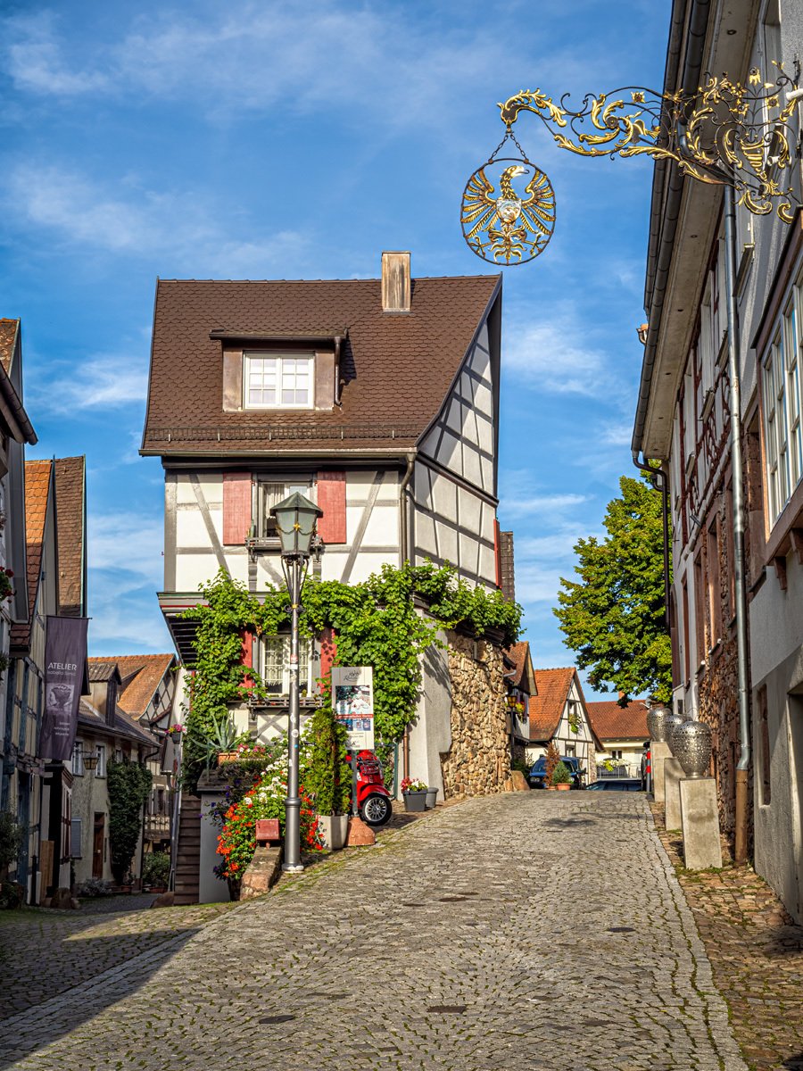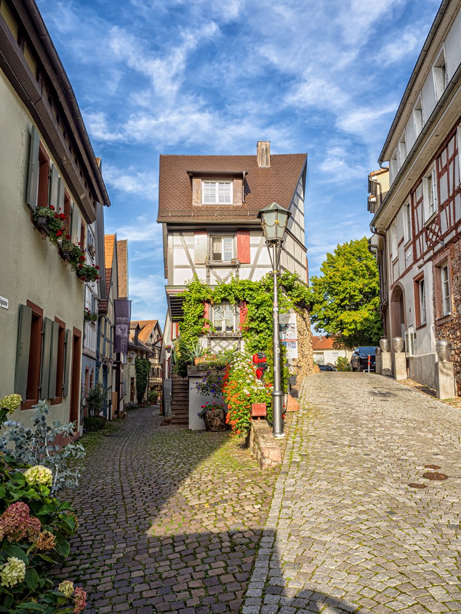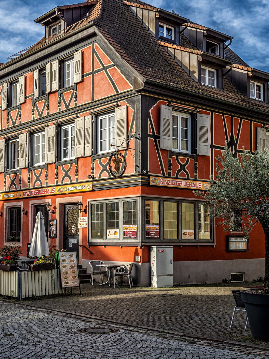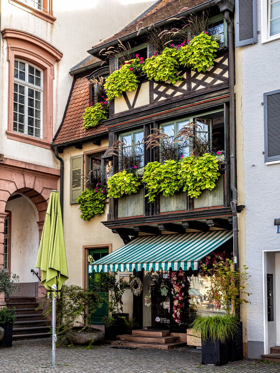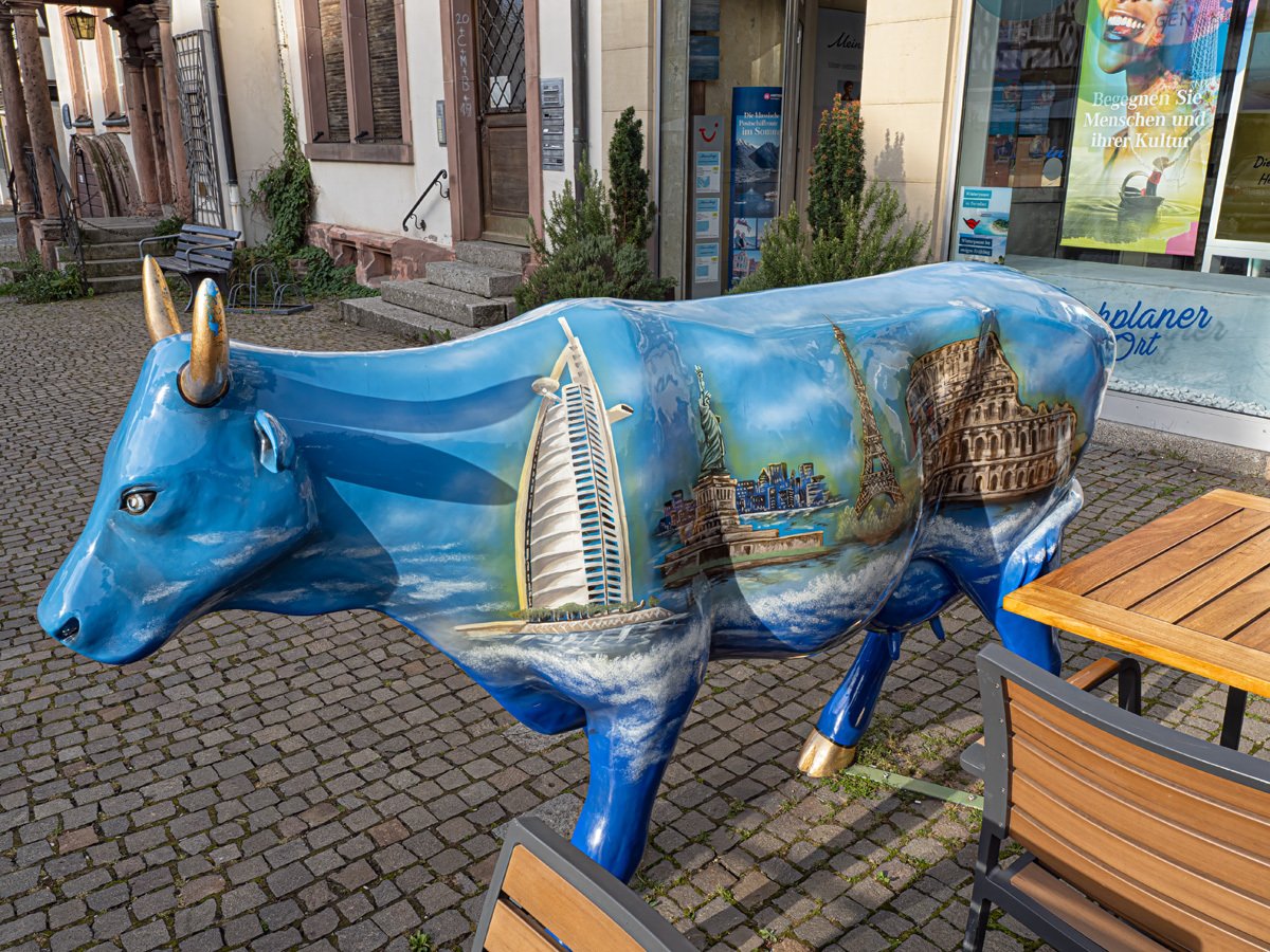 Along the way we ran into a painted fiberglass cow—bright blue and decorated with eight of the world’s great landmarks, from London’s Tower Bridge to the Statue of Liberty. Quirky, but fun! Then came the real gem: a picture-perfect half-timbered house perched right where two roads met. I may never be in Gengenbach again, so I made sure to take more than a few photos.