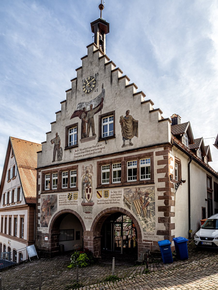 Our next stop was the little town of Schiltach, tucked deep in the Black Forest. Its historic center may be small, but it packs plenty of charm. The highlight is the Rathaus (town hall), famous for its beautifully painted façade that looks straight out of a storybook.