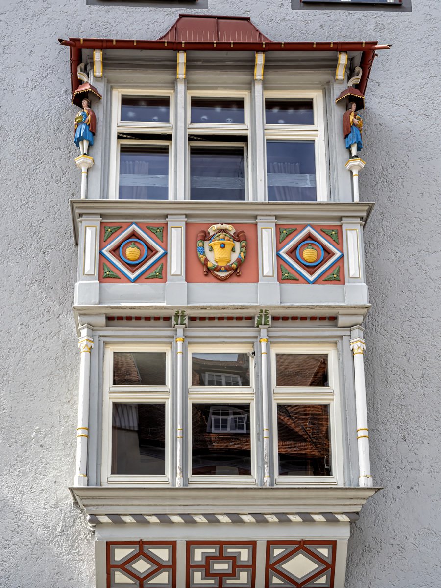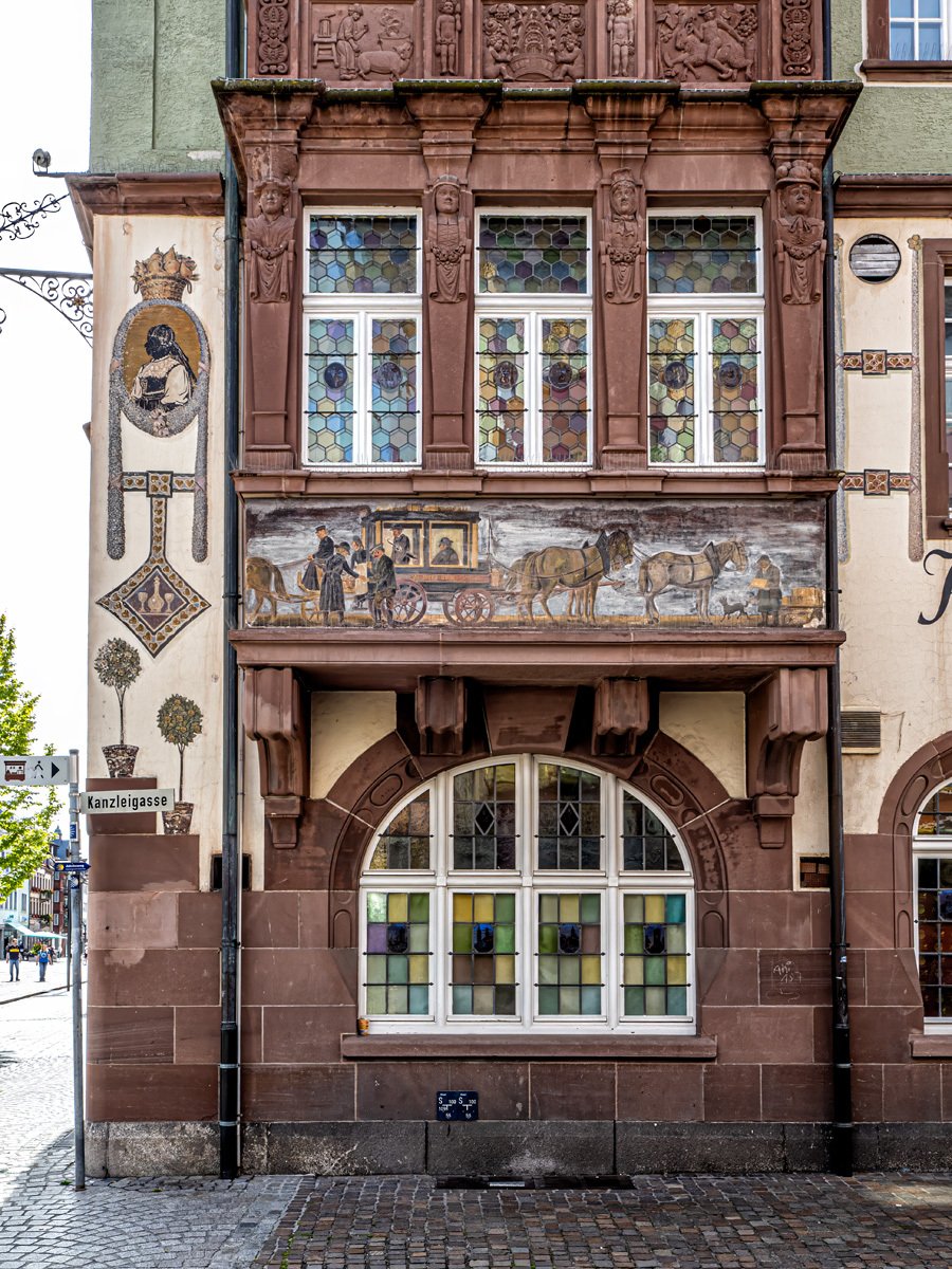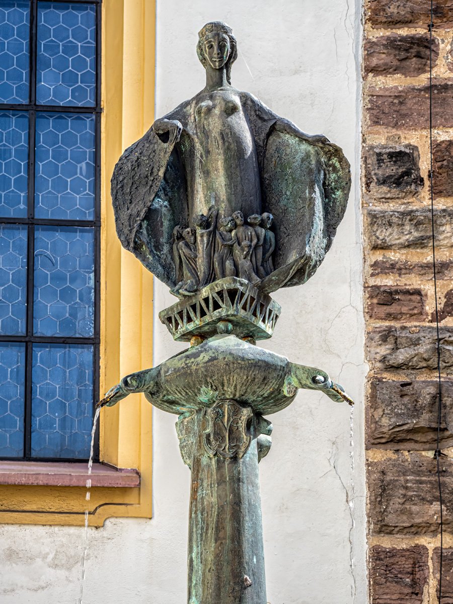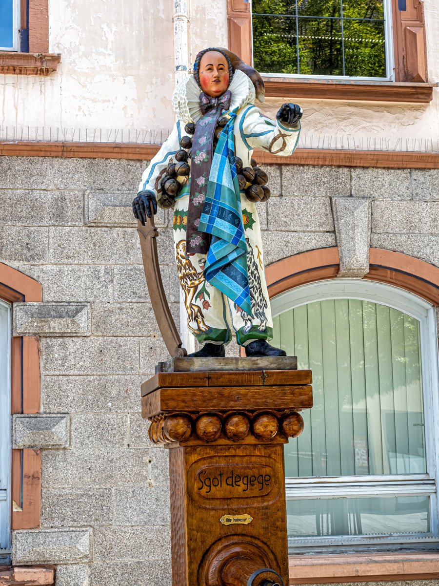 In the square we came across a fascinating copper fountain—the Franciscan Fountain, created in the 1980s. Its four sides depict scenes from Villingen’s history, from medieval guild life to religious processions, almost like a graphic novel in bronze. It’s a striking way to tell the story of the town.