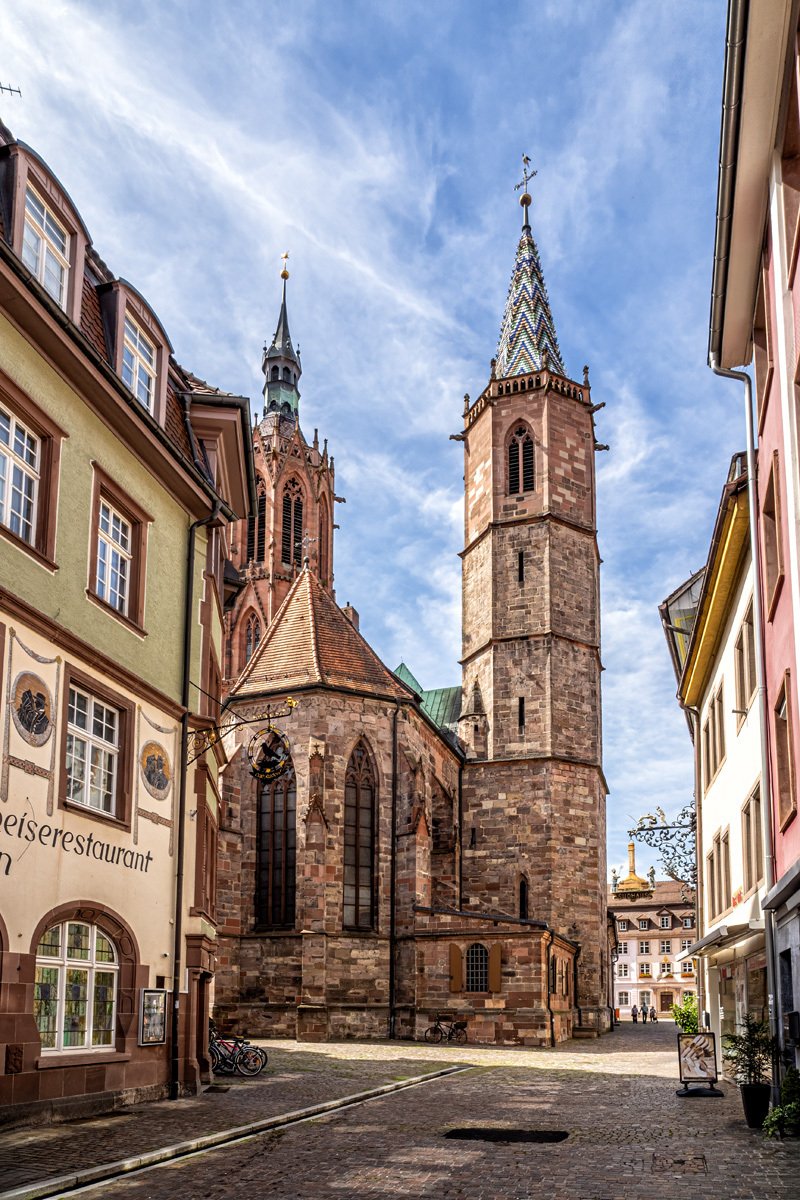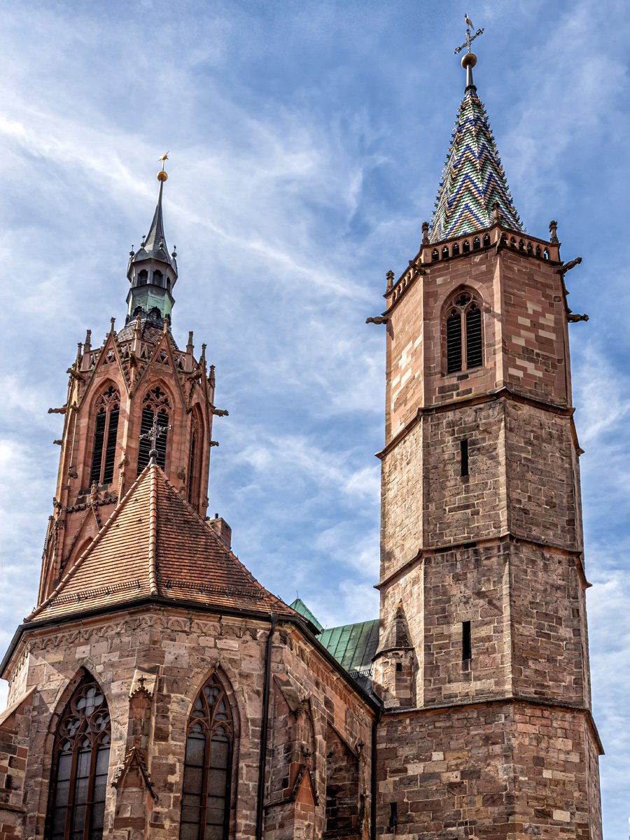 To wrap up our village tour, we ended the day in Villingen, and judging by the number of photos I snapped, I really liked this place. The standout for me was the Villinger Münster (Cathedral of Our Lady), built in the late 12th century. Inside, the ceiling features dark-toned stone ribbed vaulting—not timber, but stone—and its earthy brown color gives the cathedral a distinctive and almost solemn atmosphere compared to the bright vaults found in most Gothic churches.